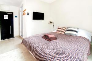 This ground-floor apartment features one bedroom and one bathroom equipped with a bathtub or shower, hairdryer, soap, and slippers. The living area includes a flat-screen TV and seating space. Guests can use the fully equipped kitchenette that contains a refrigerator, electric kettle, kitchenware including wine glasses. The bedroom provides linens and non-feather pillows while climate control includes both air conditioning and heating.