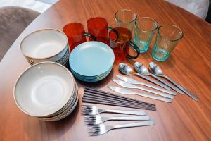 Ogni appartamento è caratterizzato da una TV a schermo piatto e un bagno completo di vasca da bagno, bidet, pantofole, shampoo, balsamo e lavatrice. La cucina separata è attrezzata con microonde, piano cottura, frigorifero, bollitore e utensili da cucina per esigenze di autosufficienza. L’intero alloggio dispone inoltre di riscaldamento.