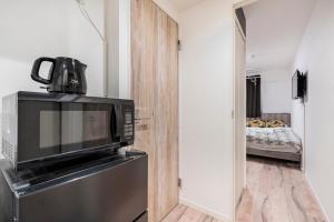 Do dyspozycji gości jest w pełni wyposażony aneks kuchenny z mikrofalówką i lodówką oraz pralka. W części wypoczynkowej znajduje się telewizor z płaskim ekranem oraz biurko do pracy, a łazienka wyposażona została w szampon, mydło, ręczniki, pościel oraz suszarkę do włosów. W pokoju dostępne jest też ogrzewanie.