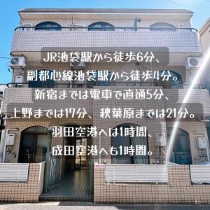 Das Apartment befindet sich im Tokyoter Stadtbezirk Toshima, in der Nähe des Nishi-Ikebukuro-Parks, nur 700 Meter vom Stadtzentrum entfernt und nahe dem Ikebukuro Mitake-Schrein.