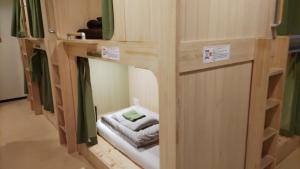 Limpio y tranquilo, con cápsulas espaciosas. Contaba con una zona común y cocina para uso propio. Quedaba a 500 m de la estación de tren, en un barrio pintoresco con supermercados y konbini cerca. La cama resultó cómoda, aunque las literas de madera hacían ruido cuando alguien subía arriba.