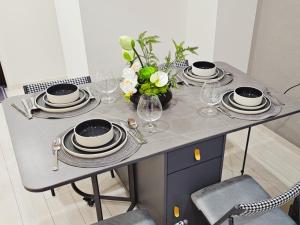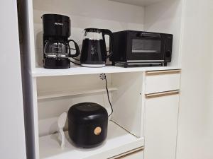 This one-bedroom apartment features a fully equipped kitchen with a microwave, fridge, and kitchenware alongside a separate living area. Guests can enjoy entertainment on the flat-screen TV and stay connected via complimentary Wi-Fi. The bathroom includes a shower and basic amenities such as a toothbrush.