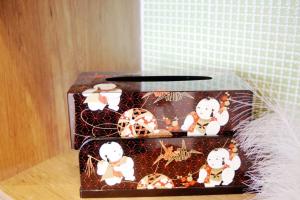 Each room includes towels, bed linen, and basic bathroom amenities such as shampoo and a shower. There is also a refrigerator, electric kettle, clothes rack, and clothes dryer. The sleeping area has an air purifier and slippers.
