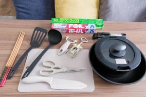 The air-conditioned home features two bedrooms and a living room equipped with a flat-screen TV. The kitchen includes a stovetop, microwave, refrigerator, electric kettle, and all necessary utensils for self-catering. The bathroom provides both a bathtub and shower, along with toiletries such as shampoo, towels, bed linens, heating facilities, bidet functions, and a hairdryer.