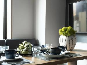 Each room at MIMARU Tokyo Asakusa Station features a separate living area that includes a kitchen equipped with a microwave, fridge, and electric kettle. Guests will find practical furnishings like a wardrobe, dining table, power outlets near the bed, carpeted flooring, and feather pillows. The private bathroom contains a shower with conditioner amenities and a bidet alongside essentials such as hairdryer facilities.