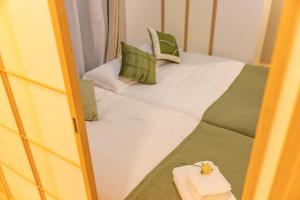 El apartamento dispone de una cocina totalmente equipada con zona comedor y microondas, además de una sala de estar amueblada con sofá cama y televisión pantalla plana. El baño privado incluye ducha, secador de pelo, zapatillas y desinfectante para manos. El suelo tatami aporta confort tradicional y las habitaciones insonorizadas garantizan privacidad.