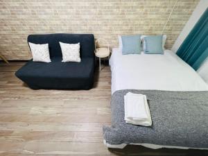 The apartment includes a flat-screen TV and a private bathroom featuring both a shower and bathtub as well as slippers, a hairdryer, linens, towels, and heating for year-round comfort. A sofa bed provides additional sleeping options.