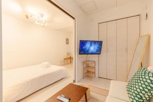 Velký a čistý byt měl posuvné dveře mezi pokojem a obývákem, dobré WiFi, vybavenou kuchyň, pračku, vanu i vysavač se žehličkou na oděvy. V blízkosti byly dvě stanice metra, obchody 7/11 a Family Mart i velký supermarket Life. Host byl moc milý a rychle reagoval, navíc půjčoval deštníky pro hosty.