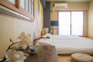 Die Unterkunft umfasst zwei Schlafzimmer mit Tatami-Mattenboden sowie einen Wohnbereich, der vom voll ausgestatteten Küchenbereich getrennt ist. Die Küche ist mit Kochfeld, Mikrowelle, Kühlschrank und Küchenutensilien ausgestattet. Das private Badezimmer verfügt über eine Whirlpool-Badewanne sowie Standardausstattungen wie Hausschuhe und Föhn. Schallisolierte Räume sorgen für rauchfreien Komfort.