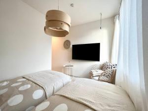 Apartmán disponuje jednou ložnicí a soukromou koupelnou vybavenou ručníky, šamponem a mýdlem. Obývací část zahrnuje televizor s plochou obrazovkou a kabelovým připojením i bezplatné Wi-Fi po celém objektu. K dispozici je plně vybavená kuchyň s mikrovlnnou troubou, lednicí, varnou deskou a pračkou. Součástí je také pracovní stůl vhodný k práci nebo studiu.