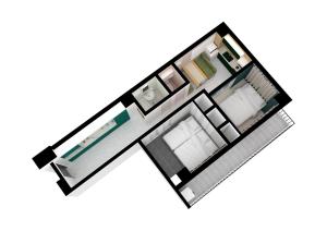 Das Apartment mit zwei Schlafzimmern umfasst eine voll ausgestattete Küche mit Mikrowelle und Kühlschrank sowie eine Waschmaschine für zusätzlichen Komfort. Das Badezimmer ist mit Badewanne und Dusche ausgestattet und beinhaltet Hausschuhe, Föhn, Seife, Conditioner sowie Schlafanzüge. Auf den Betten befinden sich Federkissen für erhöhten Schlafkomfort.