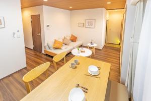 The air-conditioned apartment features two bedrooms, a living room with a sofa, and a dining area. Guests can prepare meals in the fully equipped kitchen that includes a microwave, refrigerator, electric kettle, and kitchenware. The bathroom contains a bathtub with conditioner provided alongside free toiletries. Towels and bed linens are supplied for convenience.