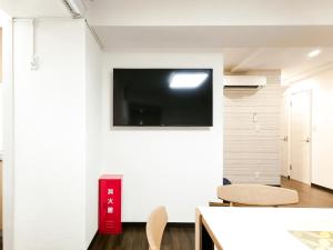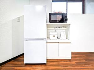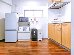 The air-conditioned apartment includes two bathrooms equipped with bidets, a fully equipped kitchen with a microwave and fridge, and a washing machine. Guests can enjoy streaming services on the flat-screen TV and relax in the shared lounge area. The rooms have windows facing a quiet street and include tatami design elements alongside sofa beds.