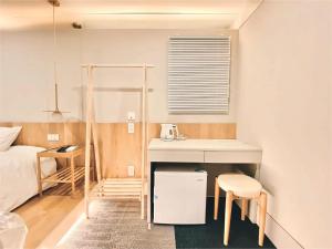 Each air-conditioned room includes a fridge, microwave, electric kettle, and a desk. Guests have access to private bathrooms equipped with showers, free toiletries, slippers, hairdryers including Dyson models, and non-feather pillows. The rooms feature flat-screen TVs with streaming platform access and complimentary Wi-Fi throughout the building.